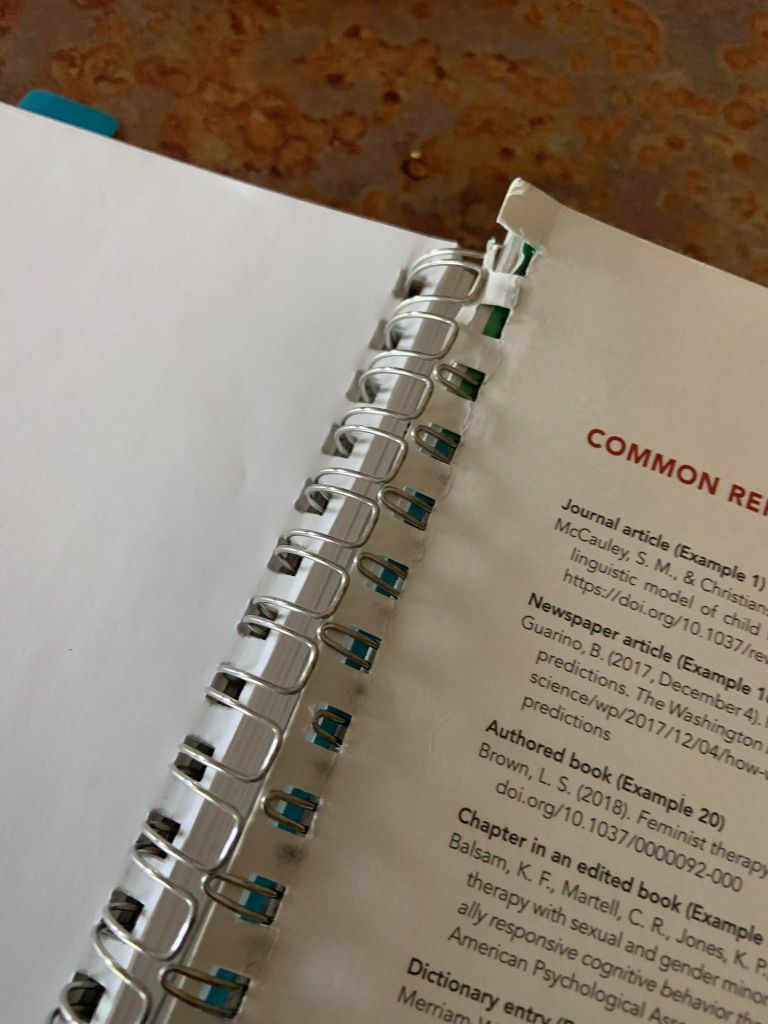 Oh, my… I am in the middle of my dissertation comprehensive exams. I am working on my essays, and my research books are falling apart! The pages were falling out, the binding was cracking, and I kept random pages on a corkboard. I took advantage of the FedEx office and had my books rebound. I LOVE IT!